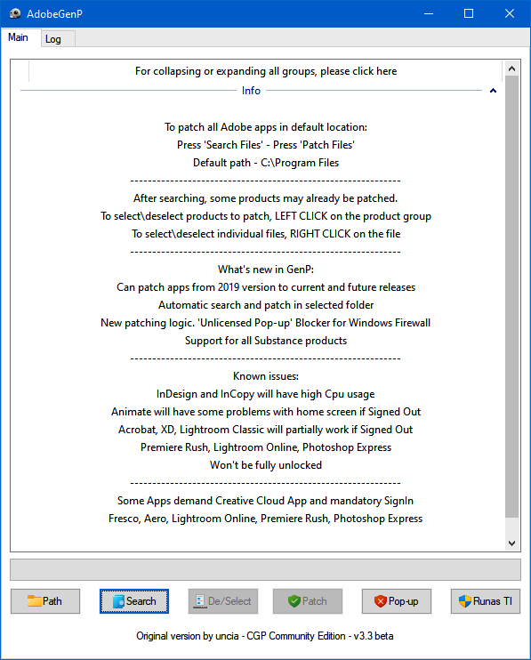 Çeşitli Adobe sürümlerini lisanslamanıza ve full yapmanıza olanak tanır. Örneğin yapmanız gereken programı çalıştırmanız ve üzerinde uygulama yapmak istediğiniz Adobe sürümünü seçerek dilediğiniz işlemi başarılı bir şekilde gerçekleştirebilirsiniz.
