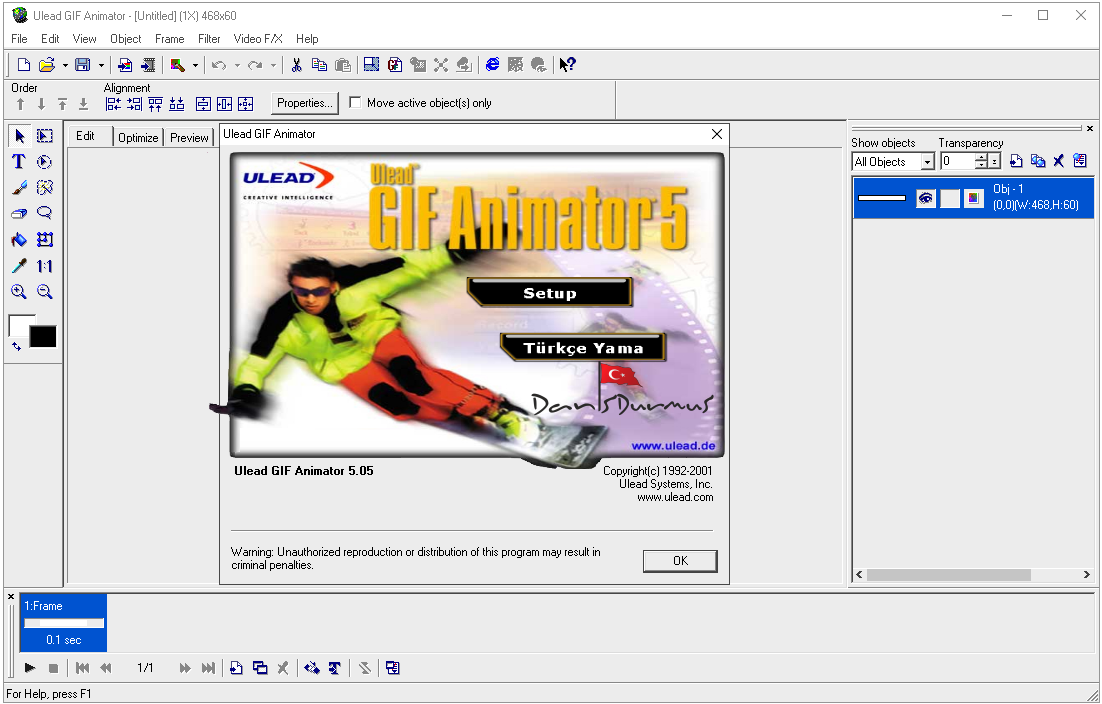 Ulead Gif Animator 5.0 ile kendinize özel gif dosyaları oluşturabilirsiniz. Ulead'ın bu programı ile istediğiniz şekil ve renklerde gif dosyaları oluşturabilirsiniz. Ulead Gif Animatorun kullanımı gayet kolaydır. Gif dosyaları yapmak için en iyi programlardan biridir. + ilaç mevcuttur.